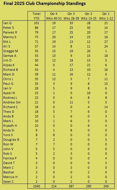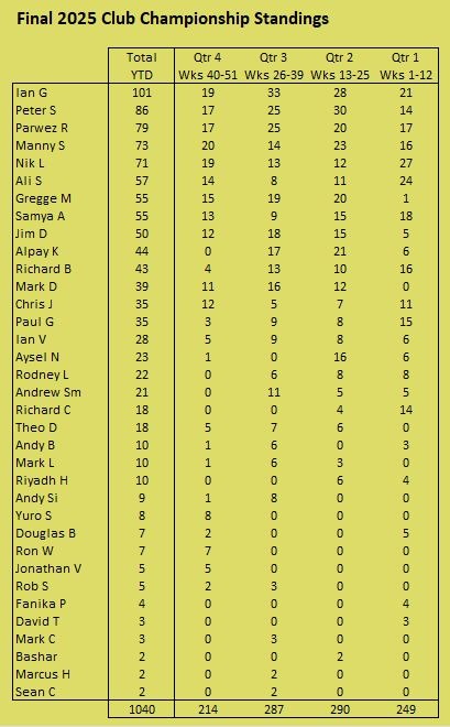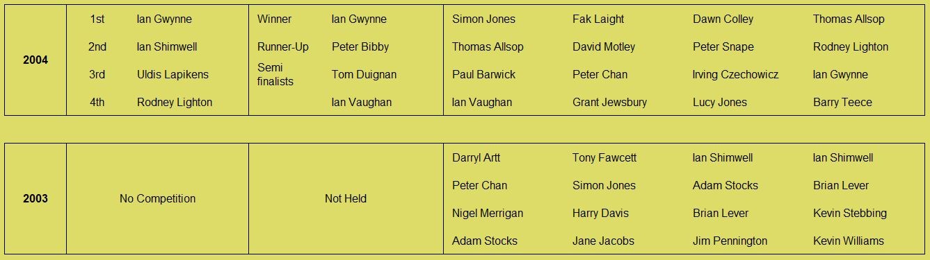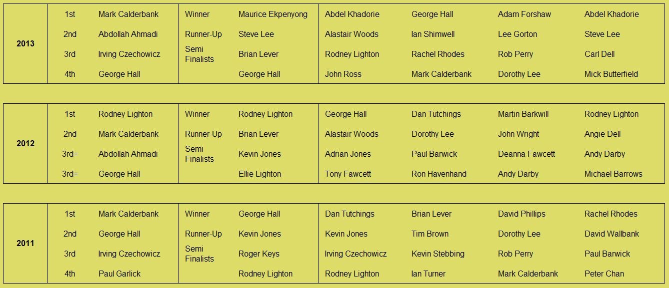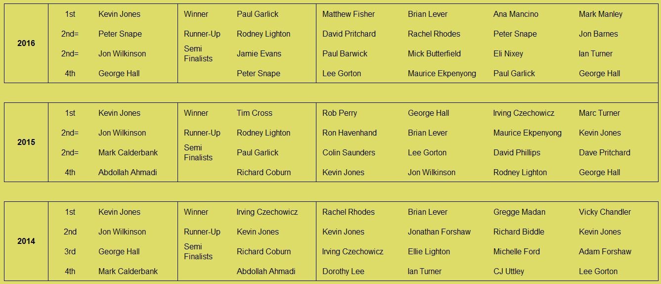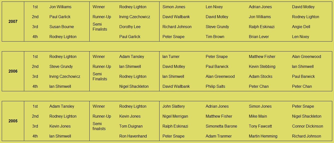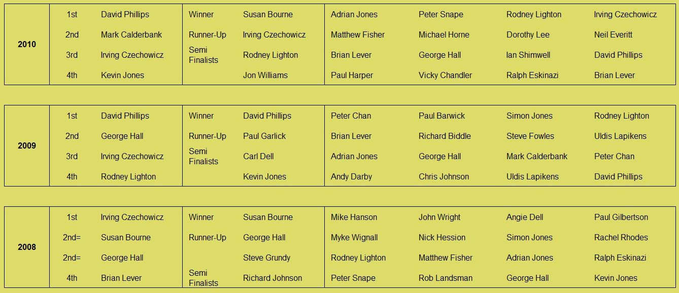 Historical records going back to the founding of the club by Kevin Stebbing in 1999 are available here: