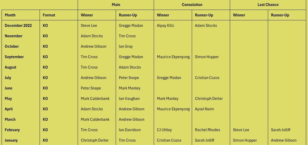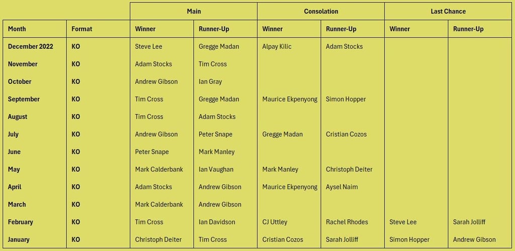 Entry fee is £20 (no registration fee). In addition, subject to demand, there will be one or more optional £10 pools. All to be split 70%/30% winner/runner-up.