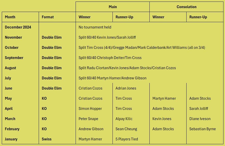 Each monthly tournament will be a standalone event, there is no annual championship nor any added money events.